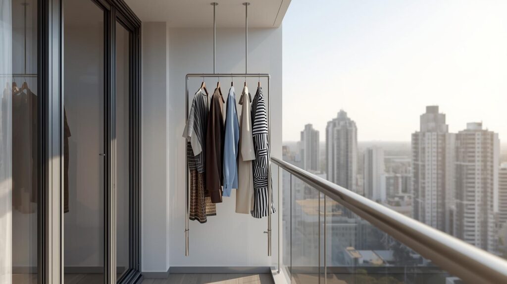 A ceiling-mounted clothes hanger keeps your balcony organized, improves airflow for faster drying, and enhances the overall look of your home.